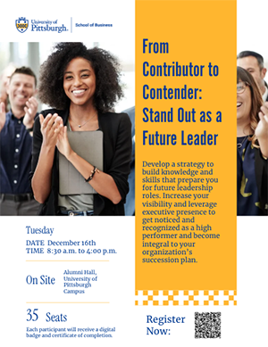 Do you have a high performer you want to prepare for a pivotal leadership role in your organization? Are you optimizing your succession plan from individual contributor to leadership contender? Take advantage of this dynamic program to support emerging leaders on your team, or attend as a supervisor and identify ways you can align your succession planning efforts with insights gained from your participation.